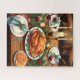 Celebre las vacaciones con este acogedor rompecabezas que presenta una hermosa cena de vacaciones. Un pavo asado dorado se sienta en el centro de una mesa festiva rodeada de velas brillantes, pino fresco y decoración navideña. Perfecto para reuniones familiares, tradiciones de Navidades, o a cualquiera que le guste la calidez de un festín de vacaciones. ¡Una manera maravillosa de traer el espíritu de la festividad a la vida pieza por pieza!