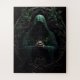 Figura mística encapuchada en el rompecabezas del rompecabezas del rezo verde