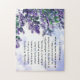 La cita inspiradora del rompecabezas de jigsaw representa hermosas lilatas moradas y presenta la Biblia Verse Philippians 4:8, "Finalmente, hermanos, lo que sea verdad, lo que sea noble, lo que sea correcto, lo que sea puro, lo que sea encantador, lo que sea admirable —si algo es excelente o digno de elogio— piense en esas cosas"*