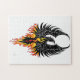 Artista tribal pájaro de tinta negra/fénix con llamas de colores en un fondo blanco