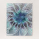 Puzzle Flor Fractal Moderna Con Azul