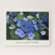 Bordeado de Hydrangea macrophylla "Tokyo Delight" (Grupo Lacecap) rompecabezas. Diseño de Claudine Boerner 2023, Todos los derechos reservados.
