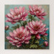 Pintura al óleo con textura hermosa que muestra flores de crisantemo rosadas detalladas y hojas verdes