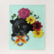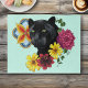 Retrato de gato jaguar negro con coloridas baldosas mexicanas y flores.