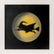 El rompecabezas impreso con la silueta de bruja malvada voladora por The FabricSeal en #ZazzleMade es una hechicera que da miedo con su escoba voladora de brujas y su gorra de brujas puntiaguda en forma de cónica mientras se extiende rápidamente por la oscuridad del cielo nocturno y pasa frente a la luna amarilla de Halloween.