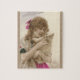 Hermosa joven con su pequeño perro blanco en una antigua postal francesa de fotos para el Día de Santa Catalina. Personalizado restauró la imagen.