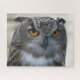 Rompecabezas con temática de vida silvestre que presenta la imagen de una lechuza águila euroasiática con ojos amarillos. ¡Diversión para toda la familia! NOTA: La imagen está diseñada para rompecabezas de hasta 16 x 20 pulgadas. Además, la imagen no está diseñada para el tamaño del rompecabezas cuadrado.