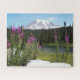 Ser desafiado e inspirado al mismo tiempo con este rompecabezas que presenta una fotografía panorámica de los nevados del Monte Rainier y las flores silvestres rosas de la hierba de fuego a lo largo de la orilla del lago en el parque nacional. ¡Diversión para toda la familia! NOTA: Imagen optimizada para tamaños de rompecabezas de hasta 16x 20 pulgadas.