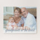Crea tu propio rompecabezas fotográfico con una de tus fotos favoritas. La moderna tipografía sobredimensionada es totalmente editable y actualmente dice "Los abuelos más queridos del mundo". La plantilla de fotos está lista para que agregue la imagen, que se muestra en formato horizontal.