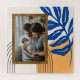 Este elegante rompecabezas personalizado cuenta con un moderno ilustracion botánico abstracto inspirado en Matisse, en color cobalto azul y amarillo, que enmarca tu foto favorita.