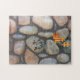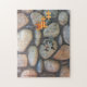 Disfruta del tiempo con la familia o amigos trabajando en un rompecabezas de 252 piezas. Este rompecabezas presenta una fotografía de primer plano de las rocas de los ríos en tonos tierra en una pared. La fotografía original fue alterada digitalmente para que pareciera un rompecabezas convirtiéndolo en un rompecabezas dentro de un diseño de rompecabezas. Se puede ver la madera de la mesa donde faltan las piezas. Haga clic en personalizar para agregar texto en un estilo de tipo de letra, tamaño y color que desee.