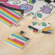 Este moderno diseño floral brillante y colorido presenta tu foto y monograma favoritos rodeados de patrones florales, de rayas y de tablero de ajedrez.