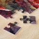 El rompecabezas cuenta con dibujos acuarelas de un zorro alerta en un bosque en la temporada de otoño con hojas de otoño alrededor de él. Un retrato de colores cálidos con naranjas, rojos, amarillos y marrones, con el sol brillando a través de los árboles. ¡Perfecto para la temporada de otoño!