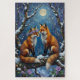 This lush, pre-Raphaelite inspired oil painting captures a male and female Fox sitting closely, their bushy tails intertwined in an affectionate loop, under the moonlight in a mystical, snow-dusted forest. A romantic and detailed Valentine's Day design.