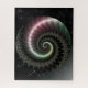 Diseño fractal en espiral sobre fondo de cielo estrellado. El fractal se basa en una fórmula Julia con transformaciones, trampas de órbita y varios ajustes de ecuación.