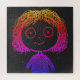 A bold and modern design featuring an illustrated character in an expressive hand-drawn sketch style. The illustration is characterized by dynamic lines and a stunning color gradient palette—ranging from vibrant yellow and orange to deep pink and purple. The artistic and unique look of the character, with its voluminous curly hair and large eyes, adds a touch of creativity and funky energy to any product. The design stands out particularly well on dark backgrounds and is perfect for streetwear, fashion accessories, and contemporary graphic art.