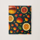 Hermoso rompecabezas de frutas, colorido rompecabezas de patrones de frutas con Naranjas, pomelo, melocotones y fresas