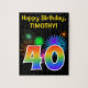 Esta diversión, características del diseño vibrantes del rompecabezas un modelo colorido inspirado por los fuegos artificiales celebradores, junto con el número "40" teniendo un arco iris multicolor inspiró el modelo de la pendiente, en un fondo coloreado negro. También ofrece un nombre y un mensaje de encargo del acontecimiento, tal como un saludo del cumpleaños. Un rompecabezas como esto pudo ser una manera de la diversión de enviar un mensaje del cumpleaños para celebrar alguien cuadragésimo cumpleaños. [~Z0000329]