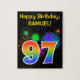 Este divertido y vibrante diseño de rompecabezas presenta un patrón colorido inspirado en fuegos artificiales de celebración, junto con el número "97" que tiene un patrón gradiente inspirado en el arcoiris multicolor, sobre un fondo de color negro. También incluye un nombre personalizado y un mensaje de evento, como un saludo de cumpleaños. Un rompecabezas como este podría ser una manera divertida de enviar un mensaje de bienvenida en celebración del cumpleaños noventa y siete de alguien. [~Z0000329]