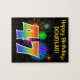 Este divertido y vibrante diseño de rompecabezas presenta un patrón colorido inspirado en fuegos artificiales de celebración, junto con el número "47", que presenta un patrón gradiente inspirado en el arcoiris multicolor, sobre un fondo de color negro. También incluye un nombre de personalizable y un mensaje de evento, como un saludo de cumpleaños. Un rompecabezas como este podría ser una manera divertida de enviar un mensaje de cumpleaños para reconocer el cumpleaños cuarenta y siete de alguien. [~Z0000329]
