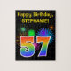 Este divertido y vibrante diseño de rompecabezas presenta un patrón colorido inspirado en fuegos artificiales de celebración, junto con el número "57" que tiene un patrón gradiente inspirado en el arcoiris multicolor, sobre un fondo de color negro. También incluye un nombre de personalizable y un mensaje de evento, como un saludo de cumpleaños. Un rompecabezas como este podría ser una manera divertida de enviar un mensaje de cumpleaños para reconocer el cincuenta y siete cumpleaños de alguien. [~Z0000329]