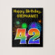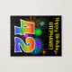 Este divertido y vibrante diseño de rompecabezas presenta un patrón colorido inspirado en fuegos artificiales de celebración, junto con el número "42" que presenta un arcoiris multicolor como patrón gradiente, sobre un fondo de color negro. También incluye un nombre de personalizable y un mensaje de evento, como un saludo de cumpleaños. Un rompecabezas como este podría ser una manera divertida de enviar un mensaje de cumpleaños para celebrar el 42 cumpleaños de alguien. [~Z0000329]