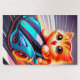 Este rompecabezas tiene un gatito conduciendo un auto retratado sobre él.