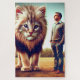 Este rompecabezas de fantasía tiene un gatito grande y un hombre retratado en él.