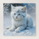 El enigma es difícil pero lindo. Bonito generó la escena del invierno con un dulce gatito blanco y esponjoso jugando en la nieve.
