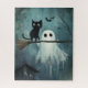 Puzzle Gato de Halloween y fantasma vuelan en la sala