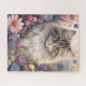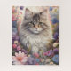 Este rompecabezas presenta un hermoso ilustracion de un gato rodeado de flores de colores en un jardín mágico. El gato tiene un pelaje largo y esponjoso con rayas y marcas, y ojos amarillos intensos que miran directamente al espectador. Las flores están en plena floración, con colores vibrantes como rosa, violeta, azul y blanco. El fondo está ligeramente difuminado, creando un ambiente etéreo. Este rompecabezas es un regalo perfecto para los amantes de los gatos o para cualquiera que disfrute de los rompecabezas.