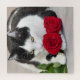 Gato lindo con el rosa rojo. Artículos a juego disponibles en nuestra tienda.