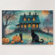Puzzle Gato negro, linternas Jack O, Halloween en casa fa