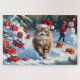 Puzzle Gato persa sentado en nieve con Gorra Navidad