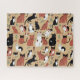 Rompecabezas en una variedad de gatos lindos y estilizados en varias poses, colores y patrones juguetones -tabby, negro, blanco y calico- ambientados en un fondo bronceado. El follaje disperso y los corazones diminutos añaden un toque lúdico al diseño.