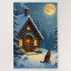 This peaceful winter painting depicts a loyal German Shepherd watching over a snowy cabin on Christmas Eve. A calm and soulful artwork that radiates warmth and seasonal beauty.