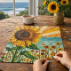 Una brillante y brillante obra de arte de un girasol, agua y sol para calmar el alma. Con la cita "Sé la flor más alta y brillante" Los colores vibrantes del girasol destacan contra la gentileza del agua, creando una deslumbrante combinación de energía y serenidad.
