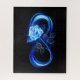 Luminous infinity symbol with glowing, beautiful, lushly blooming rose made of blue flames on black background.