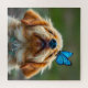 Un adorable cachorro recuperador de oro con una mariposa en la nariz.
