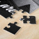 A puzzle with an inspirational quote about magic that depicts an African-American woman wearing sunglasses that reflect the city's skyline. She is standing against a wall full of graffiti street art and the whole illustration is in black and white.