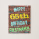 Este divertido diseño de rompecabezas con temática de cumpleaños incluye un mensaje como "¡FELIZ CUMPLEAÑOS 65, FIRSTNAME!", donde el nombre se puede personalizar. El fondo está representado por una pared de ladrillo de ladrillo marrón rojizo. El texto del mensaje de personalizable presenta colores como azul, amarillo y verde, y tiene un aspecto inspirado en el de los graffitis pintados. Un rompecabezas como este podría ser usado como una manera divertida de enviar deseos de cumpleaños a alguien que está celebrando su sexagésimo quinto cumpleaños, y a quien tal vez le guste hacer rompecabezas. [~Z0000285]
