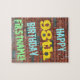 Este divertido diseño de rompecabezas con temática de cumpleaños incluye un mensaje como "¡FELIZ 98º CUMPLEAÑOS, FIRSTNAME!", donde el nombre se puede personalizar. El fondo está representado por una pared de ladrillo de ladrillo marrón rojizo. El texto del mensaje de personalizable presenta colores como azul, amarillo y verde, y tiene un aspecto inspirado en el de los graffitis pintados. Un rompecabezas como este podría ser usado como una manera divertida de enviar deseos de cumpleaños a alguien que está celebrando su cumpleaños noventa y ocho, y a quien tal vez le guste hacer rompecabezas. [~Z0000285]