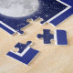 Rompecabezas en un gráfico de fases de la luna sobre un fondo de estrellas