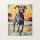 Diseño colorido, perfecto para el amante del Gran Dane y el propietario del Gran Dane. Un diseño colorido con un Great Dane en una playa tropical bajo las palmeras durante la puesta de sol.