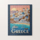Diseño de viajes vectoriales retro de Grecia. Grecia es un destino atemporal que ofrece islas empapadas en el sol, ruinas antiguas y una cultura vibrante, desde el Partenón de Atenas hasta los pueblos encalados de las Cícladas.