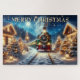 Puzzle Green Christmas Train in Snowy Village