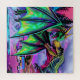 A large Green Dragon challenges a Dinosaur to a battle of superiority on the streets of a small town.
