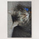 Puzzle Gris lindo Tabby Cat Ojos verdes elegantes