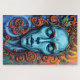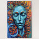 Una impresionante fusión de surrealismo y fantasía, esta obra de arte retrata a un ser celeste enigmático con ojos brillantes, intrincados elementos florales y ornamentación cósmica. Los tonos vivos de azul y naranja crean un contraste fascinante, evocando la armonía de la naturaleza y el universo.