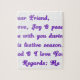 Dear Friend, Love, Joy and peace be with you during this festival season. God and I Love you Regards: Me One of the best and simplest way to appreciate and say thank you from this beautiful inspiration quote which is full of affection to the point. This beautiful short message of affection, peace,abundant grace and gratitude is found in many of the Latest Hakuna Matata gift products and online merchandise for the ultimate online shopping experience for your family friends and relatives.